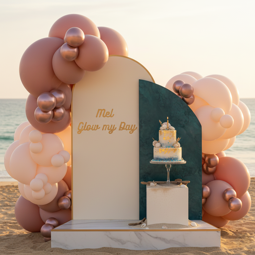 🎈 1 Panneau demi lune, 1 Grand panneau, 1 support à gâteau et 1 podium